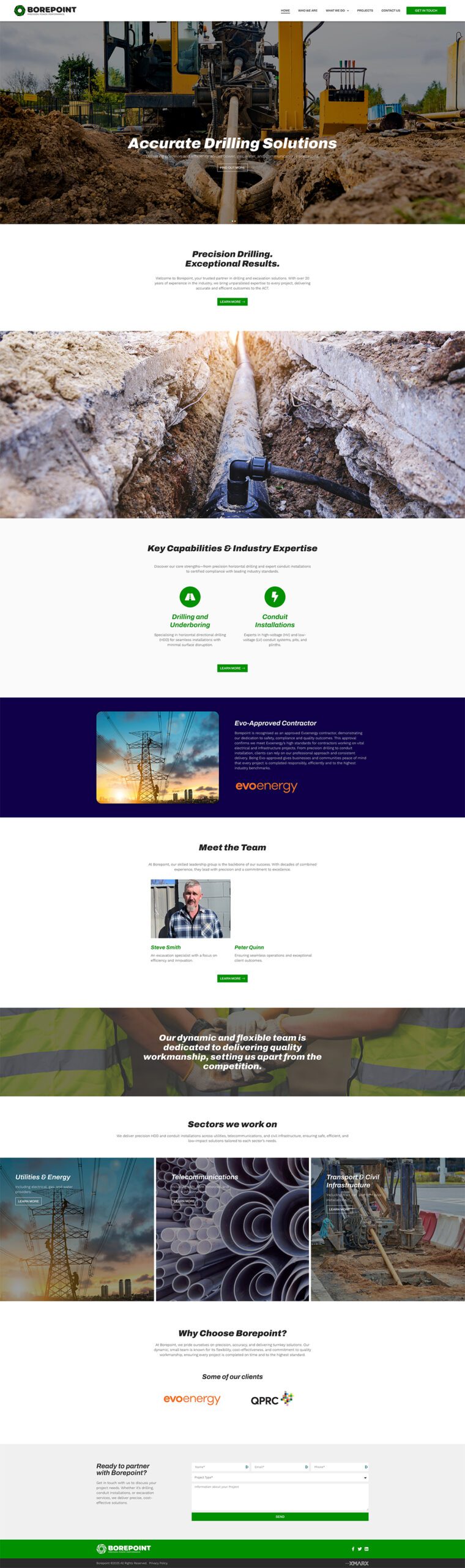 Borepoint is a Canberra-based drilling and excavation company focused on precision and reliability. Its website build communicates technical strength and professionalism, presenting services and expertise clearly. Designed with simplicity and authority, the platform reinforces Borepoint’s credibility as an approved contractor. The site positions the business as a skilled, trustworthy partner in infrastructure and specialised construction projects.