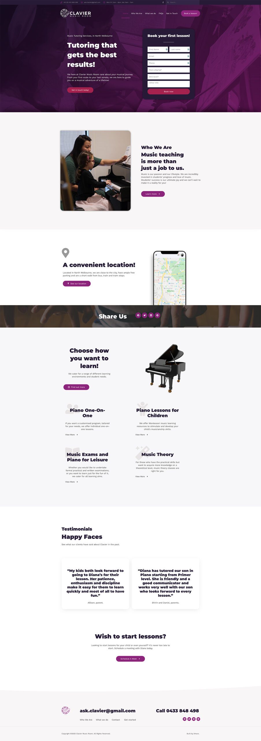 Clavier Music Room provides piano and music tuition in a welcoming environment. Its website build conveys warmth and trust, appealing to parents and learners. With clear program information and an approachable style, the platform reflects the studio’s nurturing ethos. Simple design choices support ease of contact while reinforcing music as both an educational pursuit and passion.