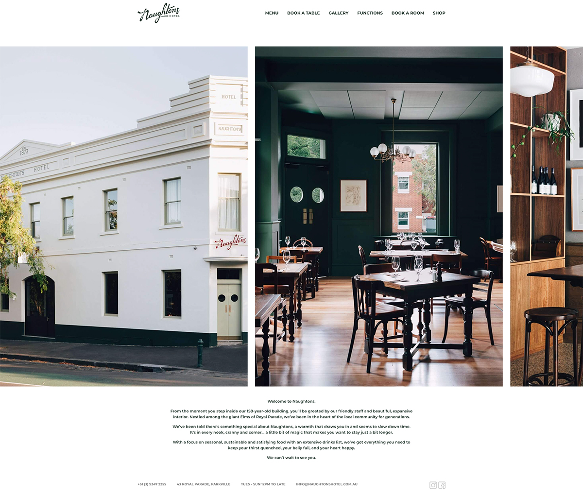 Naughtons Hotel is a Carlton landmark blending history with contemporary hospitality. Its website build highlights dining, accommodation, and events, delivering a polished yet welcoming experience. The site reflects the hotel’s rich character while supporting bookings, promoting its food and rooms, and presenting a digital identity that connects its heritage with modern-day service and community relevance.