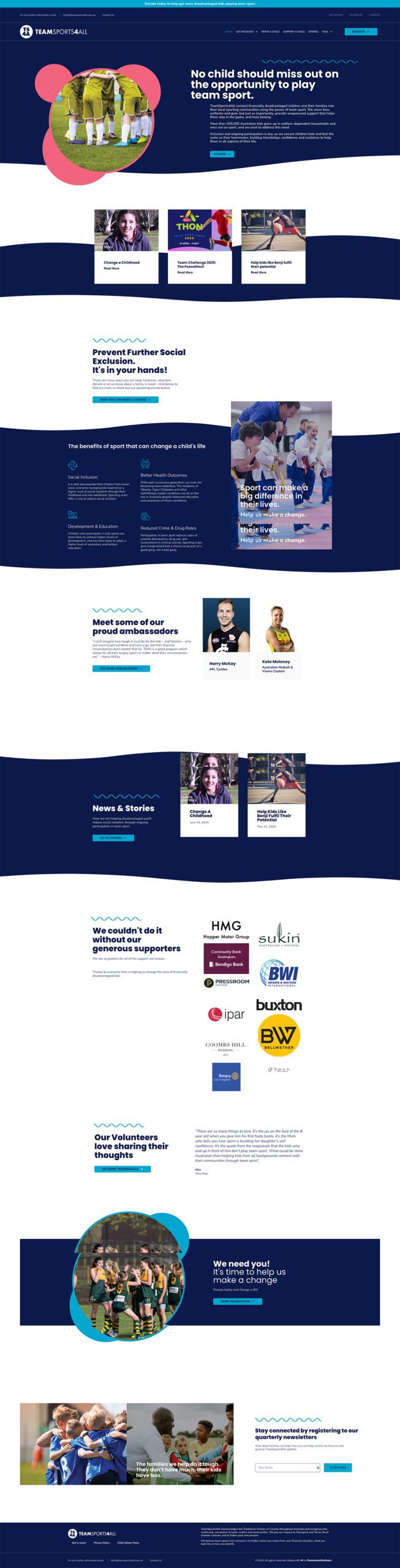 TeamSports4All is a not-for-profit helping disadvantaged children access community sport. Its website build captures energy and generosity, combining storytelling with functionality. The platform highlights programs, volunteers, and supporters, while encouraging donations and involvement. Designed to connect with families and backers alike, it embodies a mission of equality in sport through a vibrant and approachable digital presence. *This website was built in collaboration with Pressroom Partners.
